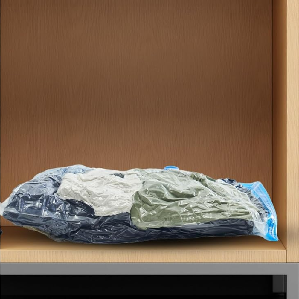 Vacuum Bags aapke kapron, bedding aur bulky saman ko compress karke kam space me store karne ke liye use hote hain. Yeh bags aapki almari ko neat aur organized banate hain.